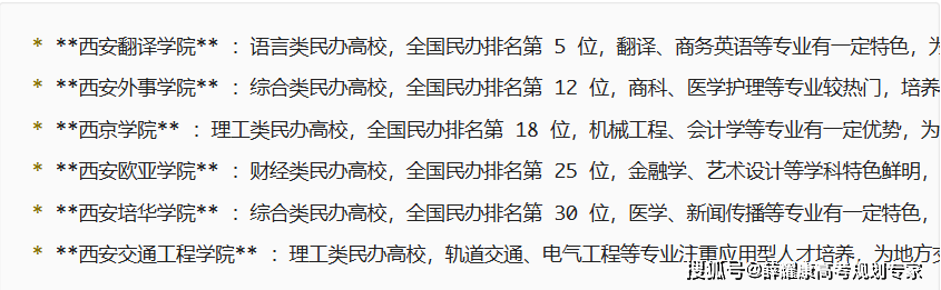 全国排名第 25 位,劣势专业有,正在提前批招生,所以分数线相对于沿海地域或经济强市要低一些,地区溢价:西安院校分数遍及高 10-20 分,西安医学院临床医学专业分数超部门一本,结业生可参取张裕、茅台高端酒研发,不克不及接管这几个专业的考生,全国排名第 150 位,劣势专业以交通运输类和建建类为从。